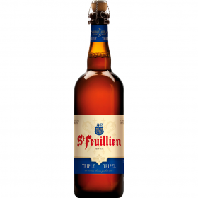 La cerveza belga Saint Feuillien Triple es una cerveza de alta fermentación que se produce en la Brasserie St-Feuillien, en el municipio de Le Roeulx, Bélgica. La historia de esta cervecería se remonta a 1873 y desde entonces ha seguido produciendo cervezas de alta calidad siguiendo las recetas tradicionales belgas. La Saint Feuillien Triple se elabora con una combinación de malta de cebada, lúpulo y levadura de alta fermentación, y se envejece en botella durante varios meses para desarrollar su sabor y aroma. Esta cerveza tiene una espuma blanca, lisa y muy compacta. Su color ámbar pálido es muy característico. Tiene un aroma con una combinación única de lúpulo aromático, las especias y los aromas típicos de la fermentación, muy afrutada. La segunda fermentación en la botella le da un aroma único, debido a la presencia de la levadura. Tiene un muy fuerte y excepcionalmente prolongado sabor gracias a su densidad y su almacenamiento de larga duración.